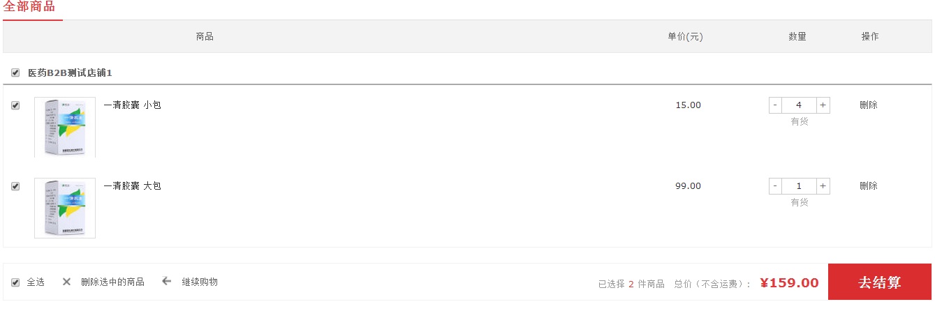 第三步:进入购物车页面,可修改采购信息,采购信息确认无误后,点击“去结算”,进入采购单页面;